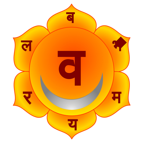 It is the second chakra situated near the genitals and regulates its function. It is related to water element and its color is pale blue. The root syllable has a golden tint and its ruling planet is Mercury.